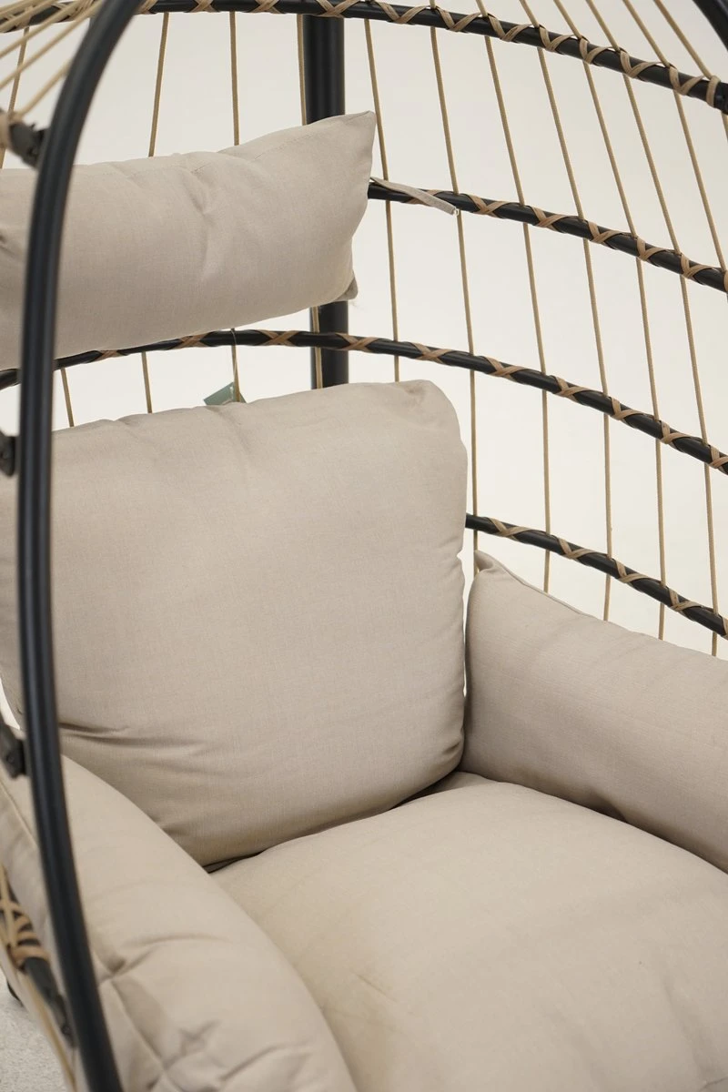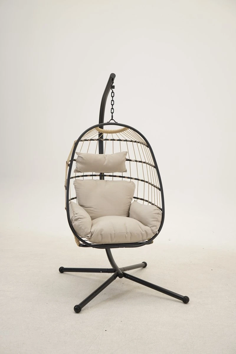 Je kan de hangstoel ook eenvoudig opvouwen, waardoor je hem gemakkelijk op kunt ruimen zonder dat het te veel ruimte in beslag neemt.