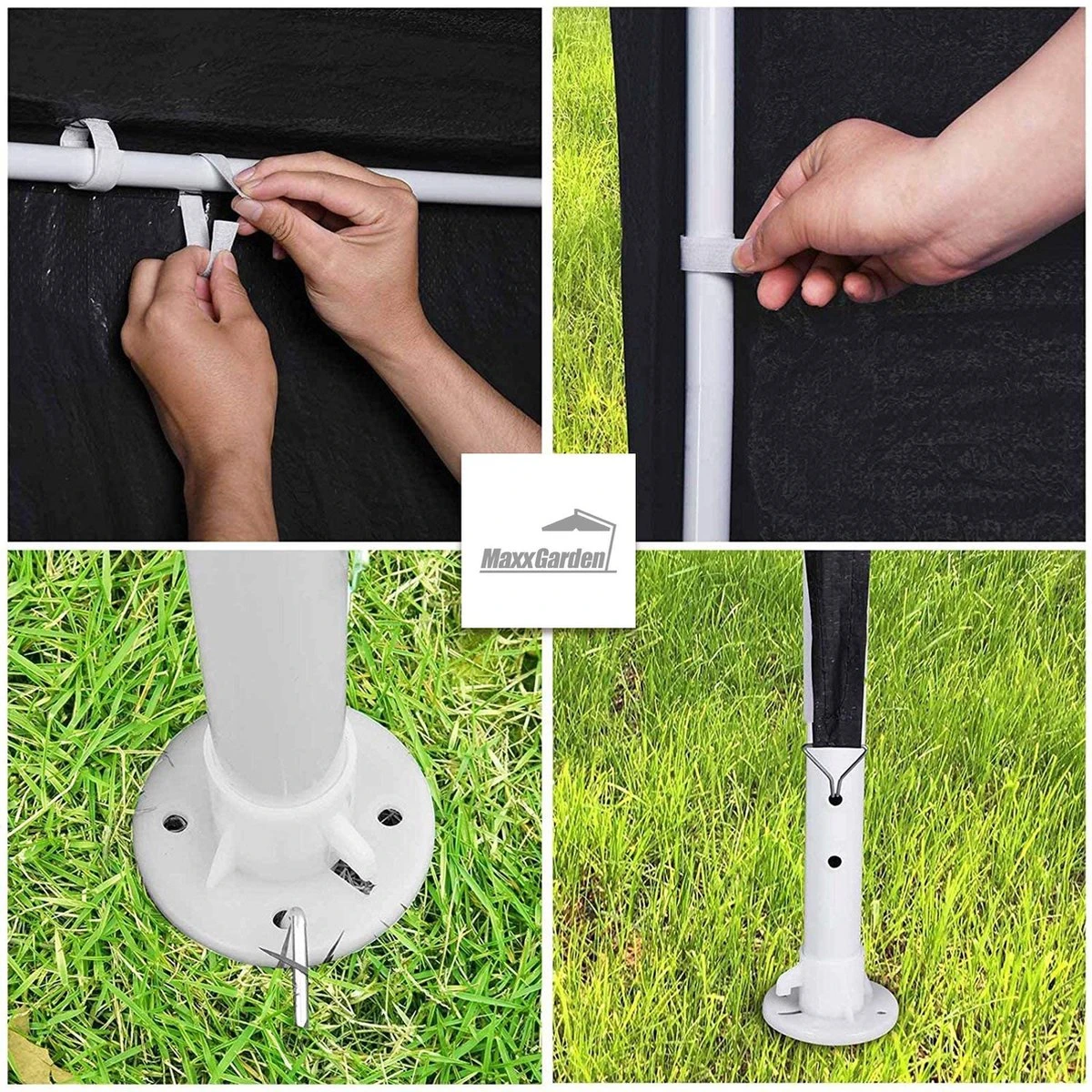 De MaxxGarden partytent heeft afmetingen van 3×3 meter en is 2,45 meter hoog. De doorloophoogte bedraagt 1,95 meter.
