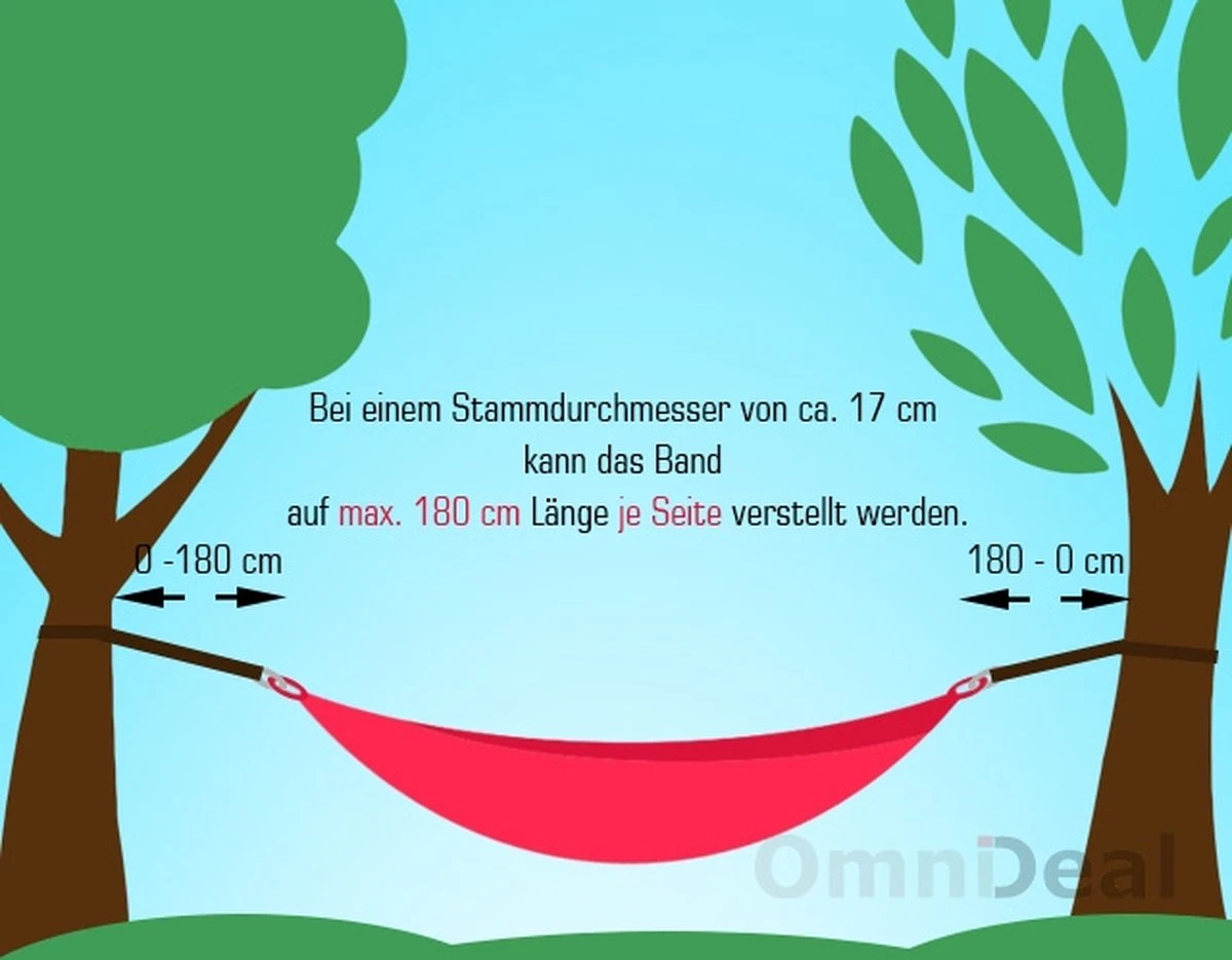 Zomer of winter: de scheurbestendige polyester riemen laten je niet in de steek. De ophangset is bijzonder uv-bestendig en weerbestendig. Hoe heet de zon brandt: de hangmatten worden niet poreus. De ophangset weegt slechts 488 gram – ideaal voor backpackers, kamperen en voor een dag in het park. Gewoon twee goede bomen uitzoeken, monteren en ontspannen.