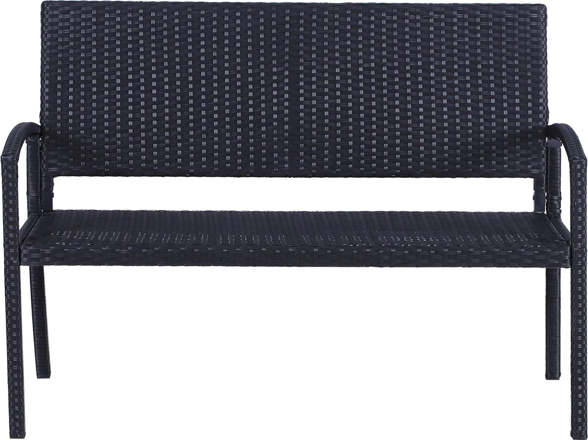 Outsunny Polyrotan Tuinbank 2-zits Parkbank Bank Staal Zwart 867-022
