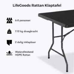 LifeGoods Klaptafel – Inklapbaar – 70x180cm – Verstelbare Vouwtafel – Weerbestendig – Zwart