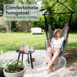 XXL 2 Persoons Hangstoel 185×130 – Zit Hangmat Met Spreidstok Tot 150 Kg – Binnen En Buiten